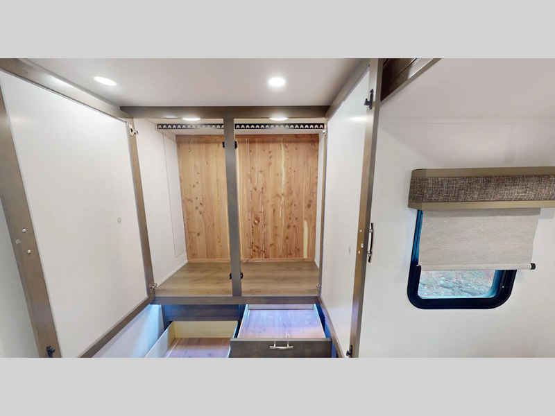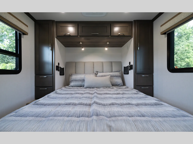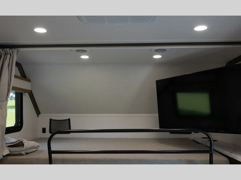 - Front Cab-Over Bunk Area with Mattress (50” x 80”) and Privacy Curtain
