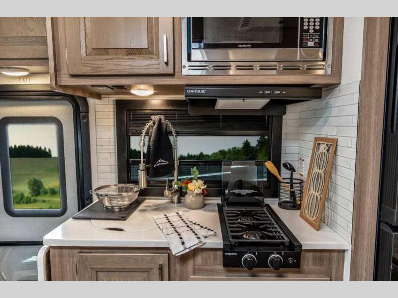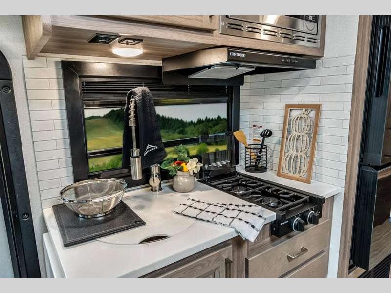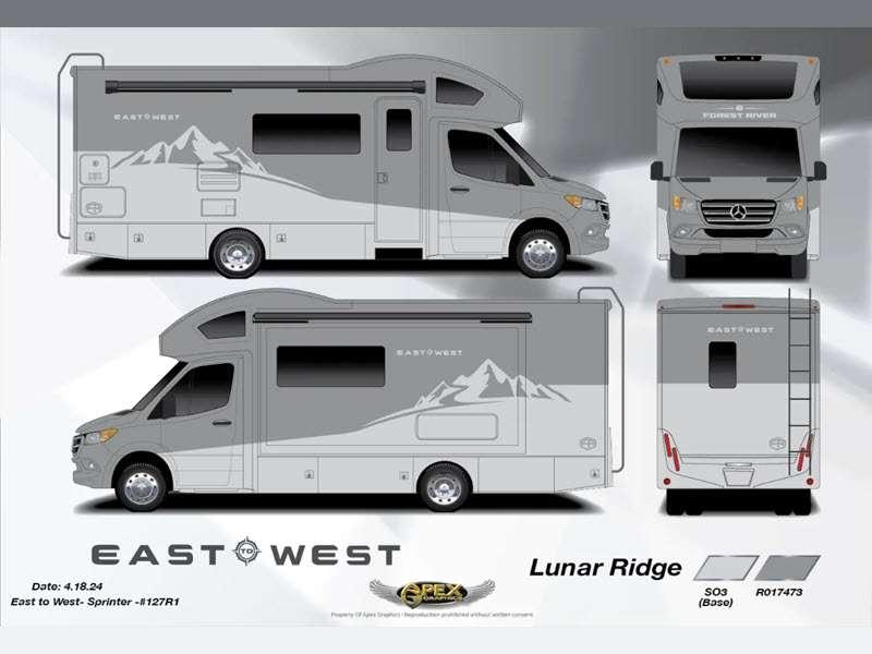 Sleeps 4 Slides 1 Length 25 ft 5 in Ext Width 7 ft 11 in Ext Height 11 ft 3 in Int Height 7 ft Exterior Color Lunar Ridge, Orion, Treeline Hitch Weight 4200 lbs GVWR 11030 lbs Fresh Water Capacity 35 gals Grey Water Capacity 32 gals Black Water Capacity 32 gals Generator 4,000 Watt Propane Fuel Type Diesel Engine 3.0L V6 Turbo Diesel Chassis Mercedes Sprinter 3500 Horsepower 168 hp Fuel Capacity 26 gals Wheelbase 171 in Number Of Bunks 1 Torque 325 ft-lb Refrigerator Type 12V Refrigerator Size 10.7 cu ft Convection Cooking Yes Cooktop Burners 2 Shower Size 24" x 32" Number of Awnings 1 Axle Weight Front 4410 lbs Axle Weight Rear 7720 lbs LP Tank Capacity 80 lbs. AC BTU 15000 btu TV Info 40" Swing Arm TV Awning Info 16' Power with LED Light Strip Gross Combined Weight 15250 lbs Shower Type Standard Solar Wattage 200 watts Similar Floorplans