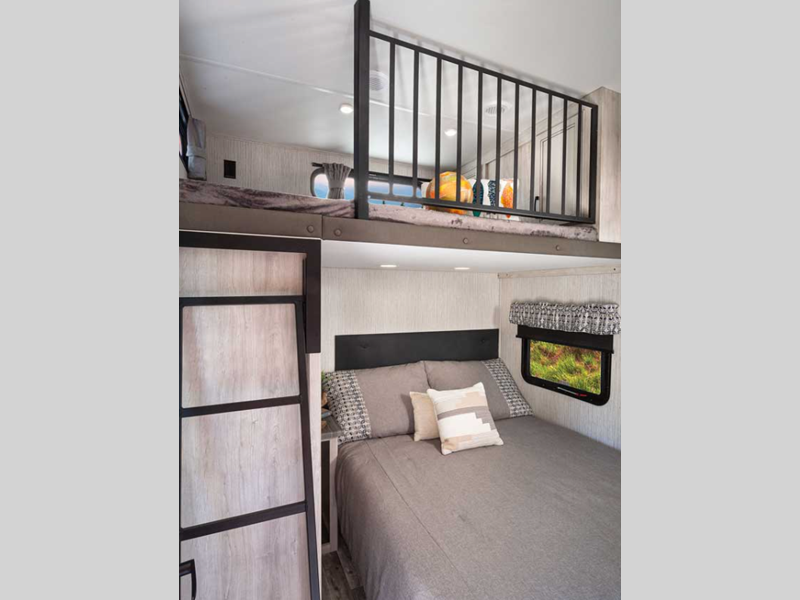 They are created with the perfect balance of size, space, features, and luxury. The automatic electric level up system will make setting up easier and the underbelly armor will protect your unit from road debris. The models come with two 15k BTU A/C units, heated holding tanks, hitch light, and many more convenient camping features.