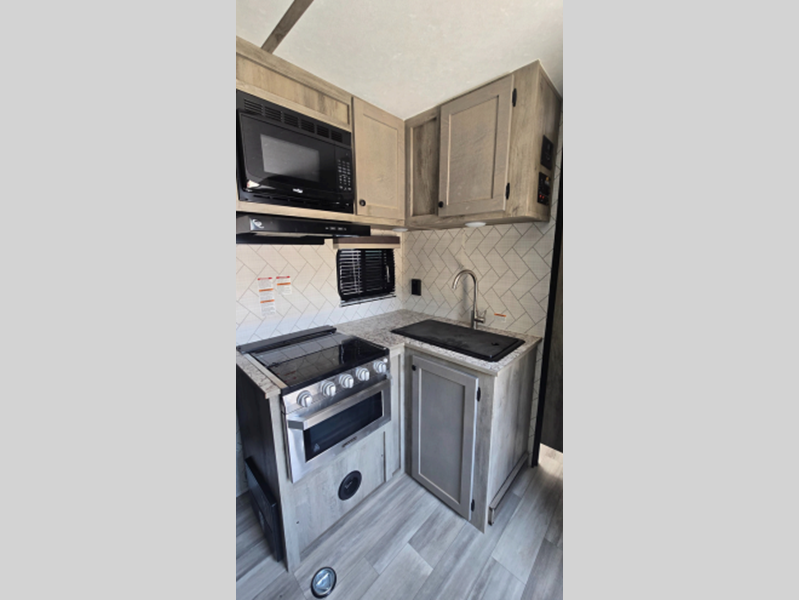 Sleeps 3 Length 24 ft 6 in Ext Width 8 ft Ext Height 10 ft 7 in Int Height 6 ft 6 in Interior Color Graphite Hitch Weight 560 lbs Dry Weight 4170 lbs Cargo Capacity 4570 lbs Fresh Water Capacity 36 gals Grey Water Capacity 30 gals Black Water Capacity 30 gals Available Beds RV Queen Cooktop Burners 3 Number of Awnings 1 Garage Size 13 ft 3 in LP Tank Capacity 20 lbs Water Heater Capacity 6 gal Water Heater Type DSI Gas Awning Info Power Axle Count 1 Number of LP Tanks 2 Shower Type Tub/Shower Combo Solar Wattage 100 watts Similar Floorplans