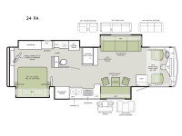Sleeps 4 Slides 4 Length 36 ft 1 in Ext Width 8 ft 5 in Ext Height 12 ft 10 in Int Height 7 ft Interior Color Walkabout, Night Wanderer Exterior Color Gen 10 and Gen 12 Paint Schemes; Barcelona, Nasa, White Mahogany, Frosted Granite. G1 Mountainscape Hitch Weight 5000 lbs GVWR 26000 lbs Fresh Water Capacity 70 gals Grey Water Capacity 66 gals Black Water Capacity 50 gals Tire Size 255/80R22.5 Furnace BTU 55000 btu Generator 5.5 kW Onan Fuel Type Gasoline Engine 7.3L V8 Chassis Ford F-53 Super Duty Horsepower 350 hp Fuel Capacity 80 gals Wheelbase 252 in Available Beds Queen Torque 468 ft-lb Refrigerator Type Stainless Steel Residential with French Doors and Bottom Freezer Refrigerator Size 23 cu ft Convection Cooking Yes Cooktop Burners 3 Shower Size 28.5" x 40.5" Number of Awnings 1 Axle Weight Front 9000 lbs Axle Weight Rear 17500 lbs LP Tank Capacity 20.3 gals. Water Heater Type Truma AquaGo Comfort Instant AC BTU 27000 btu Basement Storage 203 cu. ft. TV Info LR TV, BR TV, Ext. TV Awning Info Girard Side-Mounted Power w/Integrated LED Lighting Washer/Dryer Available Yes Gross Combined Weight 30000 lbs Shower Type Standard Electrical Service 50 amp Similar Motor Home Class A Floorplans