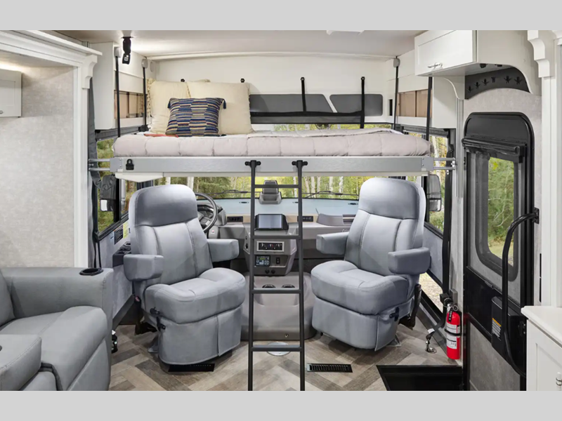 - Deluxe Captain’s seats w/6-way power pedestals, heat & massage, passenger powered footrest, and adjustable lumbar support