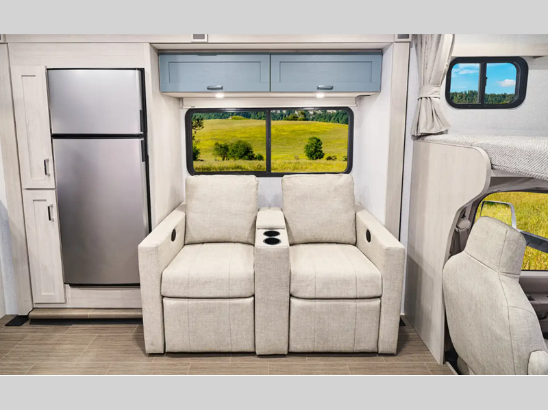 Winnebago Sunflyer Class C gas motorhome 26FE highlights: Sofa Privacy Curtain ... more about Sunflyer 26FE