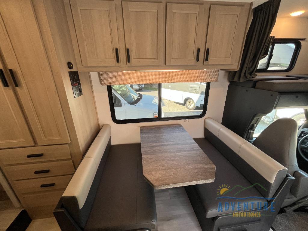 Don't forget to pack your sense of adventure when you load up this Sunseeker LE Class C gas motorhome! You'll have plenty of room on the interior to pack some belongings away in the two large storage drawers in the booth dinette, in overhead cabinets, as well as in the pantry and wardrobe. In the kitchen there is a cordless 12V charging plate that you can use to fill your phones with power, and the convection microwave will make meals super easily. An overhead bunk ladder lets you get to the 60" x 80" bunk over the cab without much effort, and you also have a queen-size bed with wedge mattress in the back slide for a great night of sleep. Wake up in the morning and grab a cold glass of juice from the 10.7-cubic foot refrigerator before starting off on your day of hiking and sightseeing.