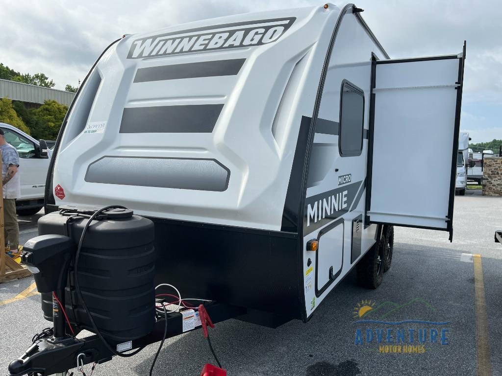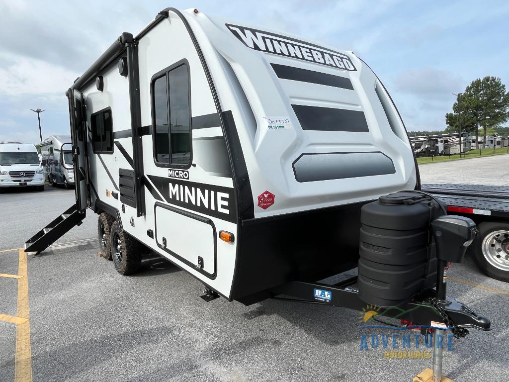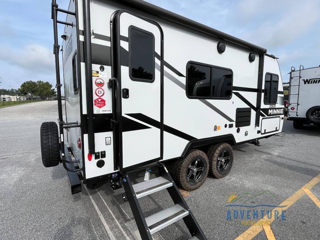 Start out on your boundless journey in one of these Winnebago Industries Towables Micro Minnie travel trailers! Towing is made simple with the 7' width to keep your Micro Minnie in your rear-view mirror. They don't lack in features either although they are compact in size. The spacious galley including a sink, refrigerator, a cooktop, and even a convection microwave oven allows you to cook without compromise. You will not only enjoy the entertainment found indoors with a Smart TV, a JBL premium sound system and Aura Cube high performance mechless media center, but outdoors you will also enjoy the JBL premium speakers and a power awning with LED lighting. Each model also comes with flexible exterior storage to make packing quick and easy, a 200-watt solar panel for off-grid camping, and Dexter TORFLEX torsion stub axles for smooth towing!