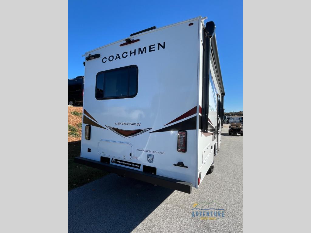 With each Leprechaun Class C gas motorhome by Coachmen you will enjoy "better" interior appointments, like the residential-sized beds, on-demand tankless water heater, and 15,000 BTU A/C. A 7" touchscreen dash radio with CarPlay and a backup monitor will let you easily navigate the open road like pro. The Leprechaun is constructed with composite sidewall and cabover floor construction plus a seamless one-piece roof material for a durable motorhome made to last.