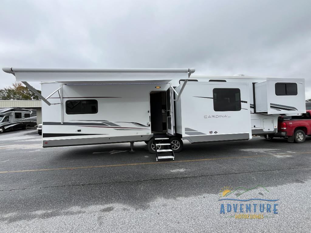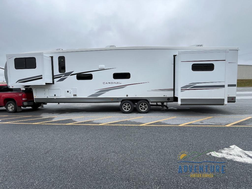 With any Cardinal fifth wheel by Forest River you will enjoy affordable luxury at every turn. These models are constructed with residential fiberglass insulation in the roof and floor, a sectioned ABS plastic underbelly armor, and a vacuum bonded, welded aluminum structure for added strength and durability. You will also find seamless roto-cast holding tanks, an outdoor shower, and 4-point auto leveling for quick and easy setup. Each model includes a best-in-class, high-efficiency 35,000 BTU furnace, along with a 13,500 BTU ducted A/C, with second and third A/C prep, plus an on-demand tankless water heater for added convenience. There are carpet-free living spaces, residential backsplash, motion lighting throughout, and many more comforts!