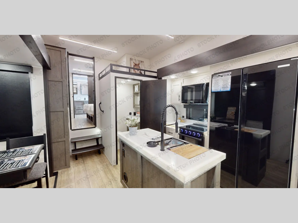 You will have amazing residential comfort in the Forest River Cherokee Arctic Wolf Suite fifth wheels! These units have a “SuperStor” basement storage compartment to allow you to bring more gear, and they have been constructed with a “ToughBend” rigid skirt metal design, a 1x engineered wood “SuperTruss” roof structure with 3/8" decking, and a 5/8” tongue-and-groove plywood floor decking. Each model includes Leash Latch pet safety technology, an outside shower with hot/cold water, preparations for an exterior TV, and motion-sensing lighting. The supersized central air conditioning unit (15,000 BTU) with quick cool and second oversized 15,000 BTU ducted A/C will cool your unit down in a snap when you camp in the hot summer months.