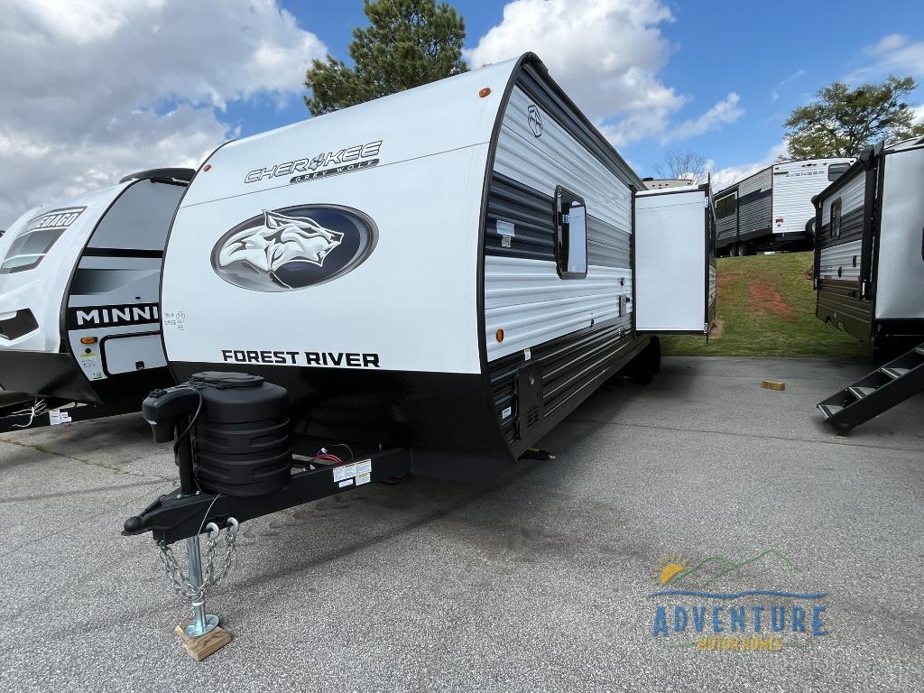 Whether it's a journey that will take you to new locations or a tried-and-true getaway to that favorite and memorable destination, the Forest River Cherokee Grey Wolf travel trailers and toy haulers are going to make the trip worth it every single time! You can travel in confidence with the premium wheel package, seamless roofing membrane with heat reflectivity, Power Gear frame technology with space-saver rail design, and Cherokee back-up camera system. The Cherokee Grey Wolf's interior is highly attractive with its stainless steel kitchen suite package and premium bedding ensemble and comforter. You will also find a black waste tank flush-out kit, an outside shower with hot and cold water, an armored underbelly tank enclosure, and an RV grill quick connect.