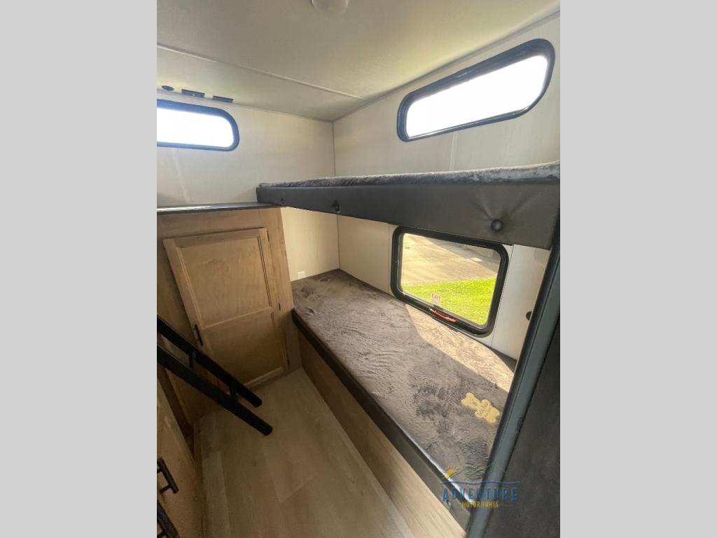 Your larger family will love spending weekends away with this Cherokee Grey Wolf travel trailer as their home away from home. This model offers lots of sleeping space with three bunk beds in the rear private bunkhouse. In the front, there is a master suite with wardrobes and nightstands on either side of the RV king bed, and it even has private access to the dual-entry bath. The two entry doors will make accessing the trailer easy for everyone, and you will appreciate the abundant storage throughout this unit including large overhead cabinets, a spacious pantry, and numerous outside storage compartments for all of your outdoor gear. There's even an outside bar & grill!