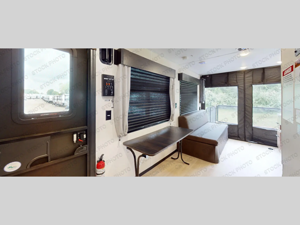 You will undoubtedly love this Cherokee Grey Wolf Black Label toy hauler! Because of its ability to have up to 15' 2" of cargo space, you can easily load up the ramp door and head out to your outdoor toy land, and you can bring much more than just your toys since this trailer also comes with exterior storage, a bedside wardrobe, overhead cabinets, an 10-cubic foot refrigerator, and a kitchen pantry. The full bathroom is another feature that is going to allow you to experience a true getaway since you won't need to find public facilities to use while you're gone, and the USB charging stations will allow you to charge your phone inside while you're outside playing.