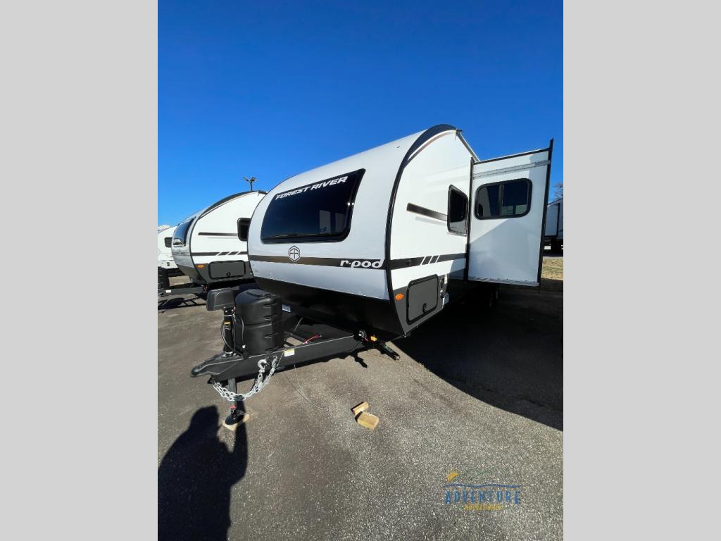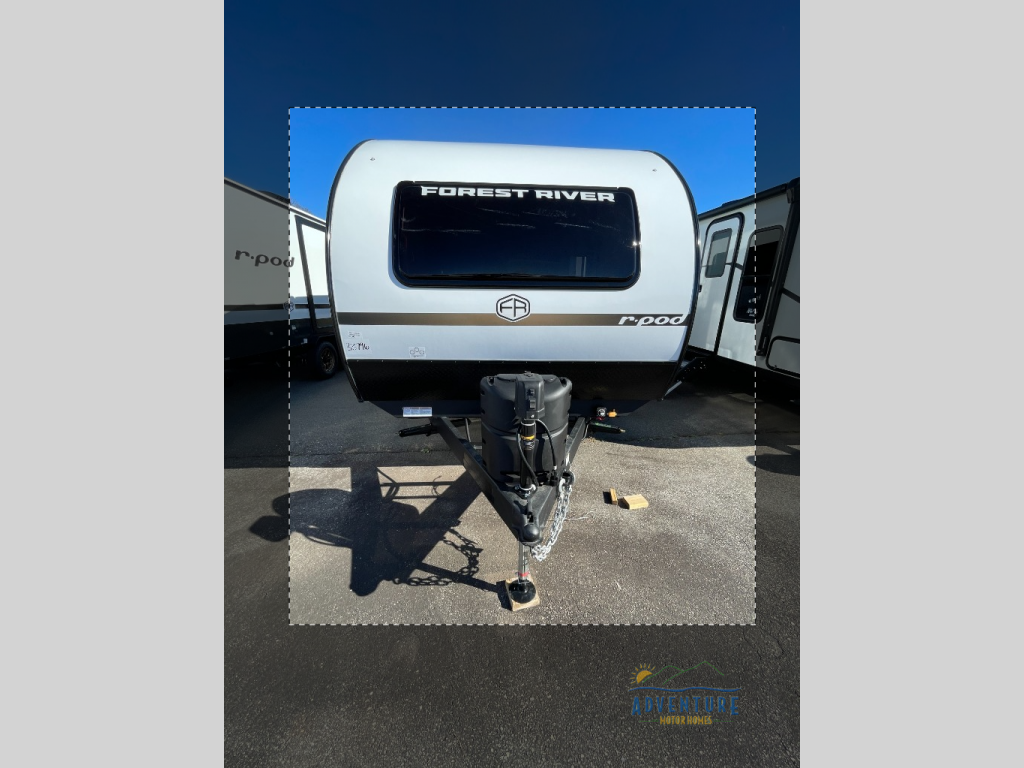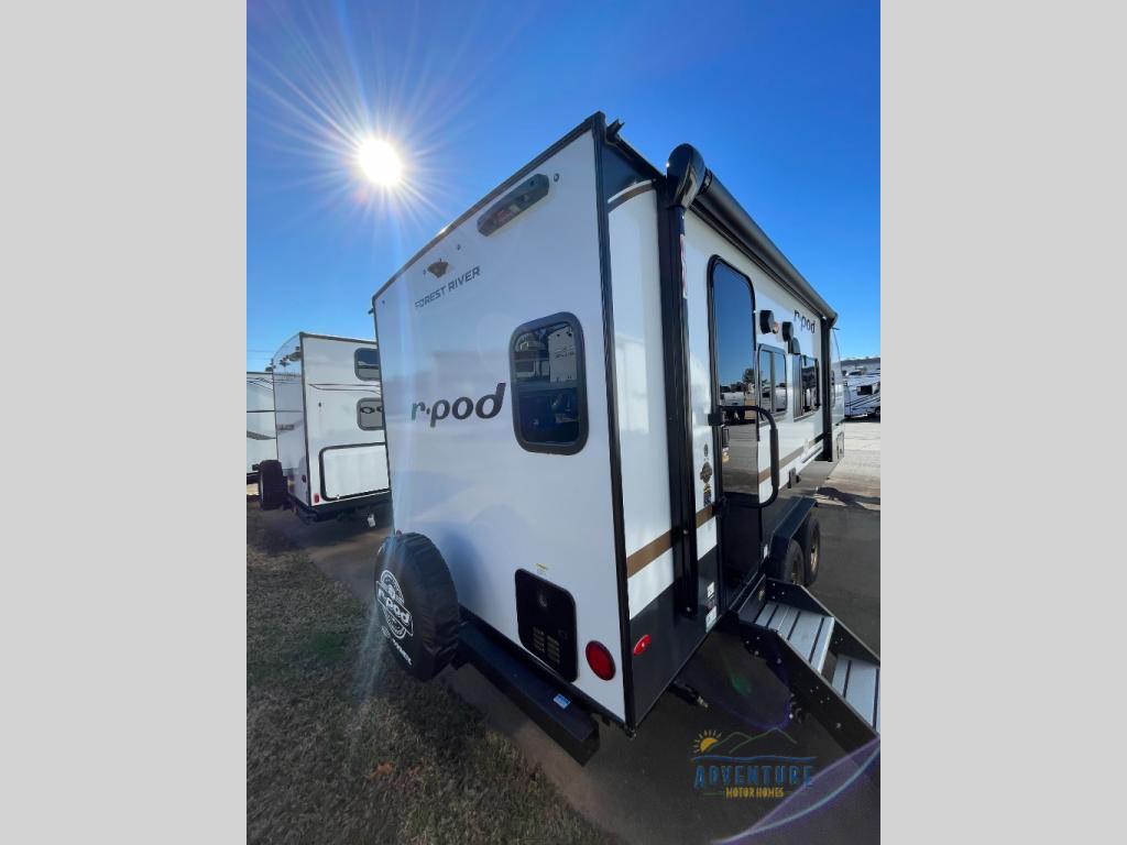 With any R-Pod travel trailer by Forest River, you will enjoy affordable luxury at the lowest tow weight in its class! There is a sealed underbelly with forced heat, a curved dual-pane acrylic front window with a bug screen and night shade, plus a large roof mounted solar panel for off-grid capabilities. The 15K A/C unit will keep you comfortable during the summer camping months, and the tankless water heater will provide endless hot showers after hiking, biking, swimming and more! Each model also includes a black glass friction hinge entrance door, roof ladder prep, exterior motion lighting, plus a hot and cold exterior spray port to wash off sand from the beach. Inside, you'll enjoy seamless Surf-X kitchen countertops, blackout roller shades, and a central vacuum system for hassle-free cleaning!
