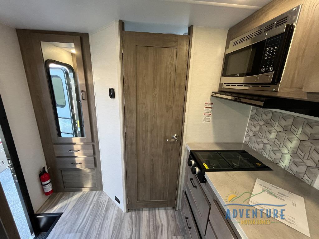 This BT Cruiser is available exclusively on the Chevrolet 3500 Chassis and offers you a comfortable way to travel. Step inside to find a convenient closet and complete bath nearby for easy access from outdoors. You will find cooking for your family simple with a two-burner cooktop, counter space, and a microwave oven. There is also a round sink for cleaning up, a panty and refrigerator opposite the sink for all of your food storage needs. Two opposing jack knife sofas with removeable table between serve as your dinette and sleeping space.