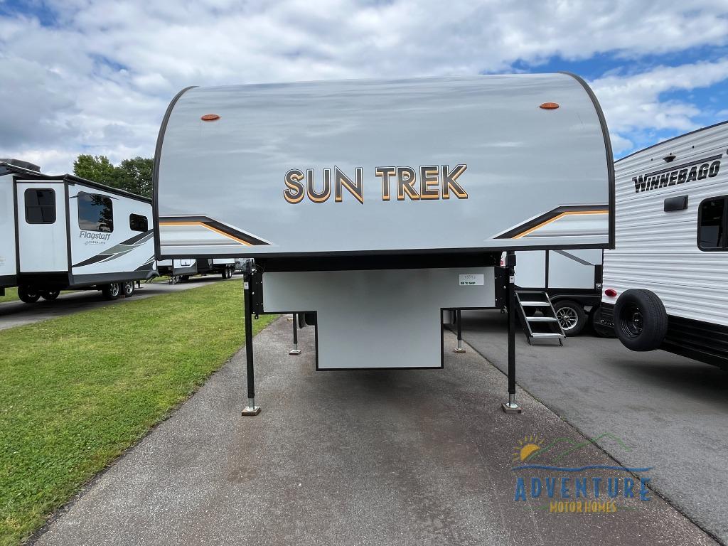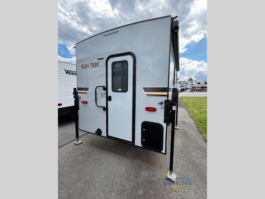 With any Sun Trek truck camper by Sunset Park RV, you will find a durable camper made to last thanks to the vacuum bonded laminated sidewalls and one-piece PVC roof membrane. You will also appreciate your choice of white or gray sidewalls, plus there are manual jacks outside and a 100-watt solar panel for some off-grid power. Inside, a power roof vent will help keep air moving, and you can choose an optional roof A/C if you enjoy camping in the summertime. Additional interior comforts include LED lights, tinted windows and solid surface countertops with a sink cover!