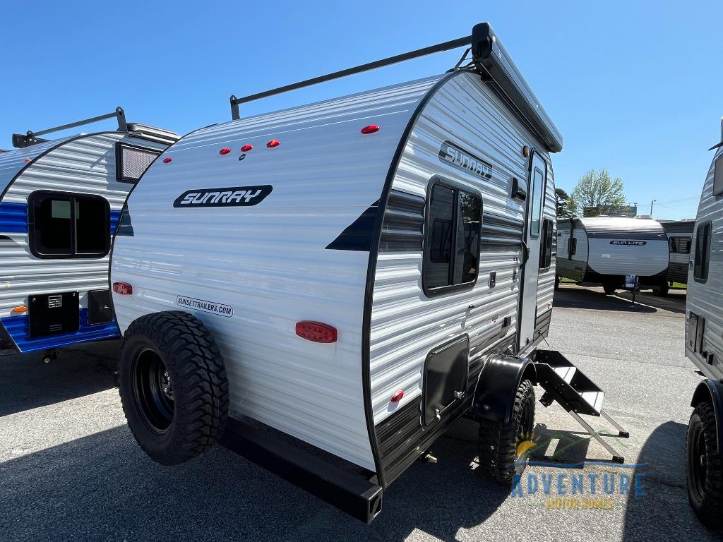 The Sunray travel trailer from Sunset Park RV is an investment that you'll be able to enjoy for many years to come! These compact trailers are effortless to tow, so you won't need fancy equipment to have fun at the campsite. The Sunray is built upon a powder-coated steel chassis, and it has a diamond plate rock guard to keep the front end protected from debris. You'll find radial tires, a spare tire with carrier, and .024" aluminum siding on each model. You'll be able to remain comfortable when staying indoors thanks to the A/C and furnace. Another way that your camping experience will be elevated is with the Confidence Package which comes with a 6” lift with off-road tires, black steel rims, a roof rack, and more!