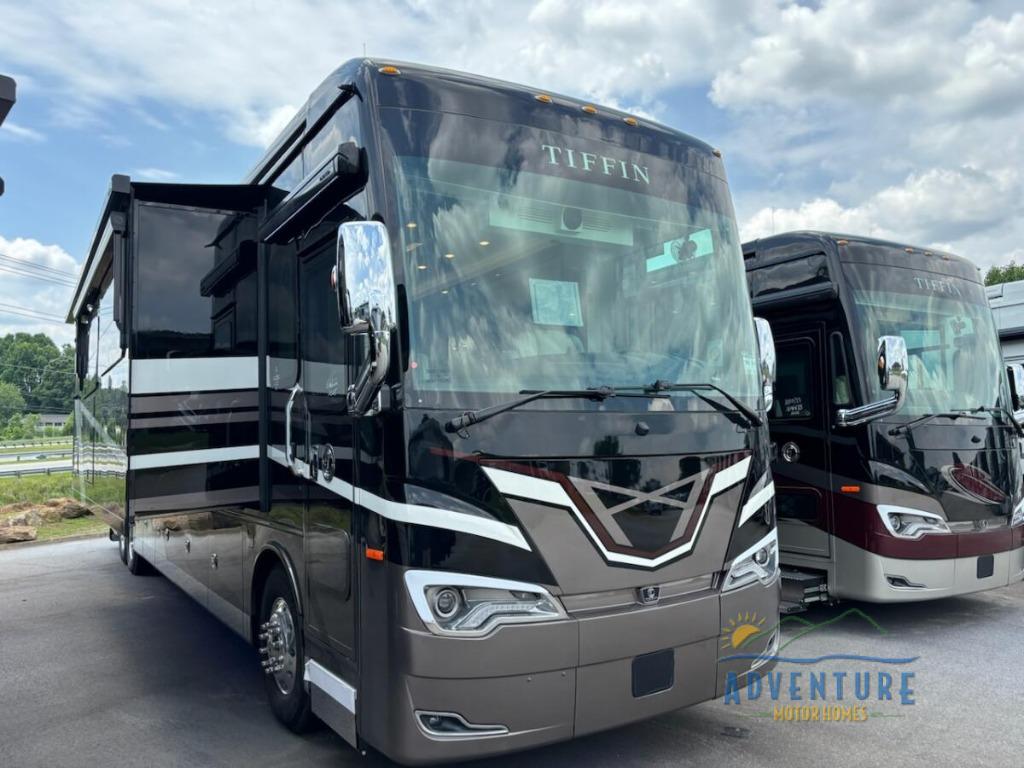 With any Allegro Bus Class A diesel coaches by Tiffin Motorhomes you will experience ultimate luxury, breakthrough technology, and unmatched power thanks to the 450 HP Cummins L9 engine. Each model sits upon a PowerGlide raised rail rear engine diesel chassis for a smooth ride, and you are sure to turn heads with the premium paint system. The captain's job is made easier than ever with the adaptive cruise control, the collision mitigation with forward warning and active braking, and the Valid LCD instrument cluster display with integrated leveling controls. This hydronic heating and electronic appliance-equipped coach features two Girard roof awnings, an Onan 10.0 kW generator, and three 15,000 BTU A/C units to keep you comfortable all year long. New and exciting features include a drawer-style dishwasher on each model, Gold Heat dual zones heated tile floors, a standard exterior ladder, Starlink Pro with a subscription, and more!