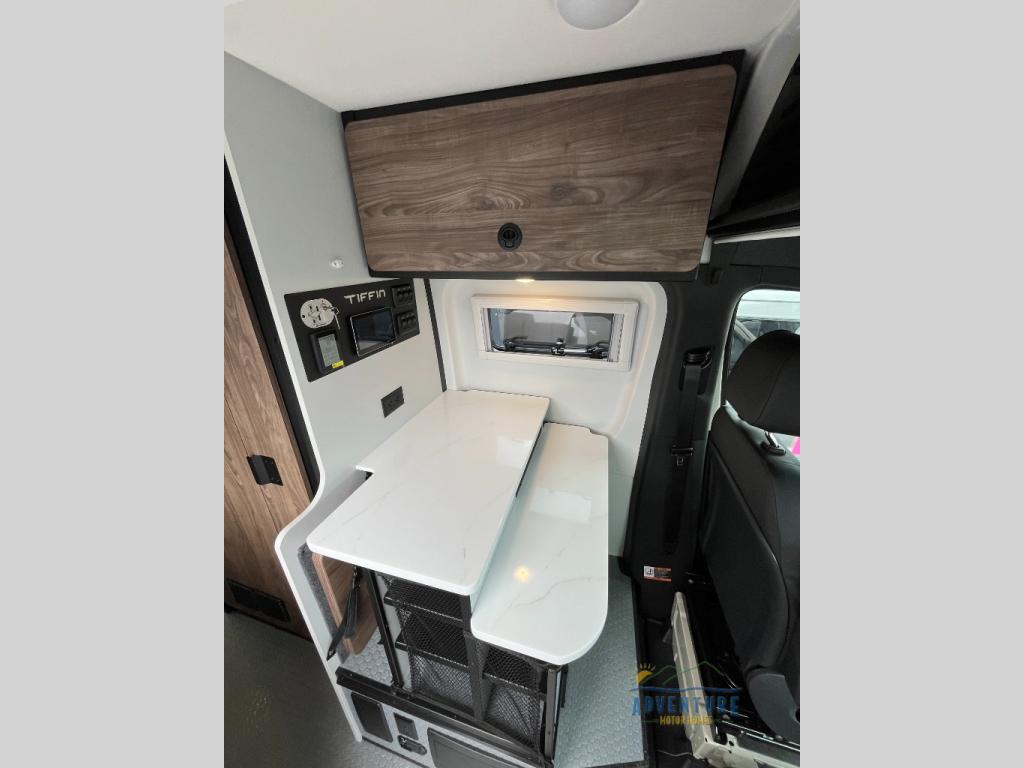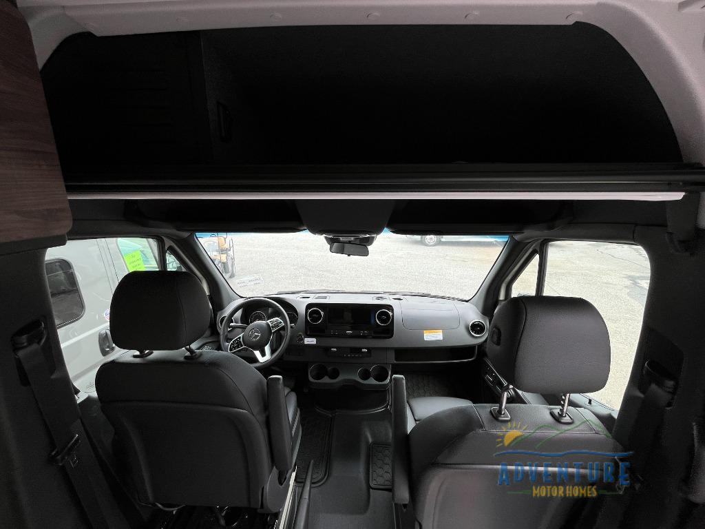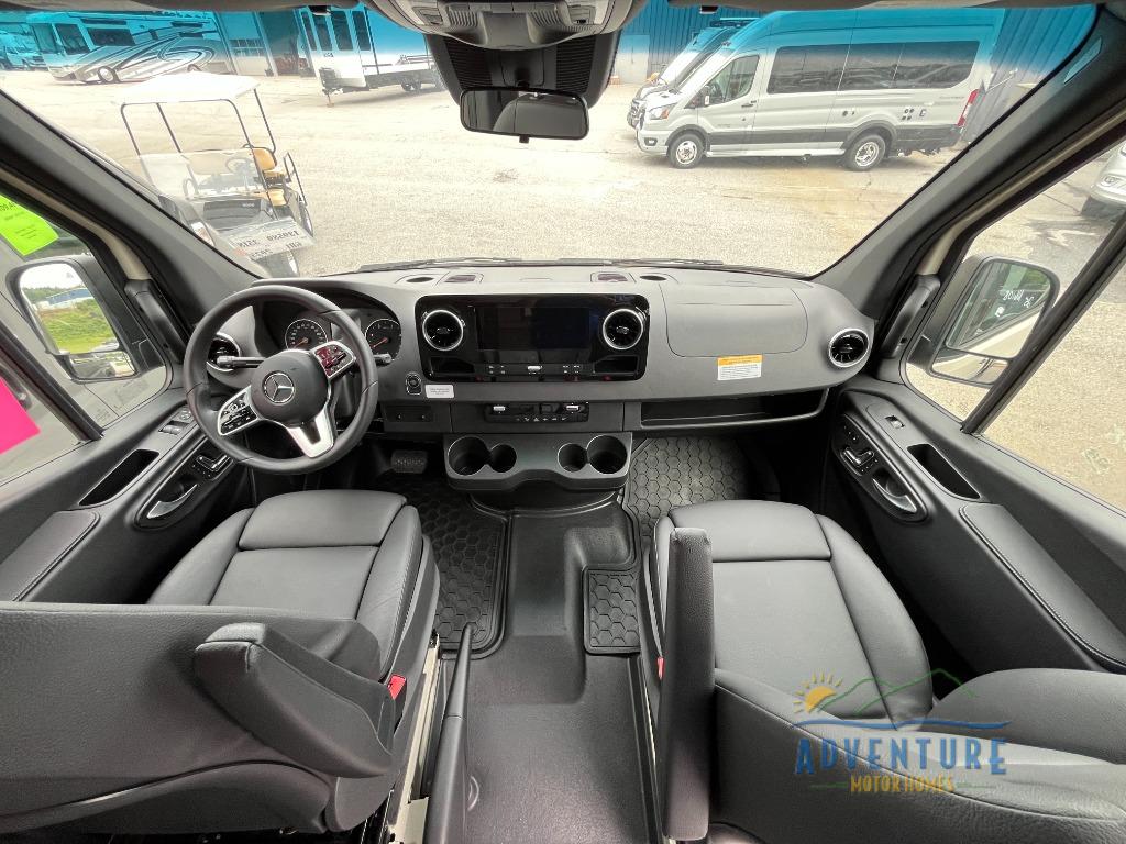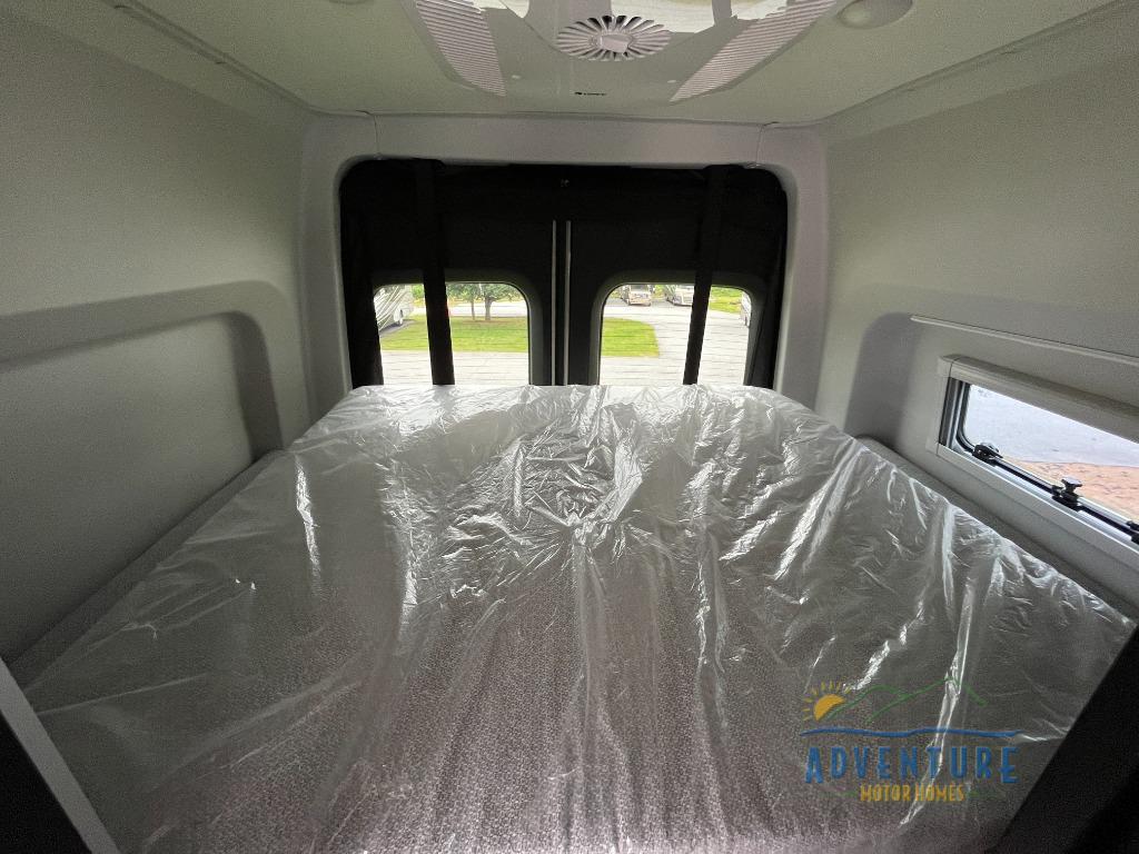 Pick a place, any place, and start packing. This off-road capable diesel van features a 49" x 79" gear garage beneath the power lift bed where you can store camp chairs, paddle boards for the lake, outdoor games and plenty of hiking gear. The on-board wet bath will keep you fresh and clean, and you can easily whip up meals and snacks in the kitchen with a single-burner induction cooktop and refrigerator beneath the counter for your perishables. There is also a sink for cleaning up and a removable counter extension. An optional jump seat and removable wall mounted swivel table behind the driver's seat can accommodate you for meals or a game of cards, or you can choose the optional adventure bar work/storage solution in place of the jump seat. Both front driver and passenger seats swivel to the back so you'll have plenty of seating even with company. At night, the power lift bed will allow you to get a great night's rest so you can enjoy it all again the next day!