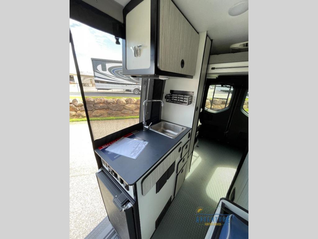 Go off-grid and off the beaten path with the Revel Sport Class B diesel motorhome by Winnebago. The Lithionics 4.1 kWh LiFePO4 battery features a second alternator to charge the system, and you'll appreciate the Bluetooth control, along with 215-watts of solar to keep you powered up. This camper van sits on the durable Mercedes-Benz AWD sprinter chassis with a 2.0L high-output turbo-diesel engine. You will also find a MBUX touchscreen multimedia infotainment system, heated cab seats, plus added safety features, such as active braking assist and blind spot assist. The interior of the Revel Sport is outfitted with heavy duty vinyl flooring throughout to withstand your adventrous lifestyle, and there are RAM Tough-Track mounts throughout to keep your gear secure. Additional features include a hydronic heating system, aluminum running boards with ground effect lighting, a 5,000 lb. trailer hitch, and so much more!