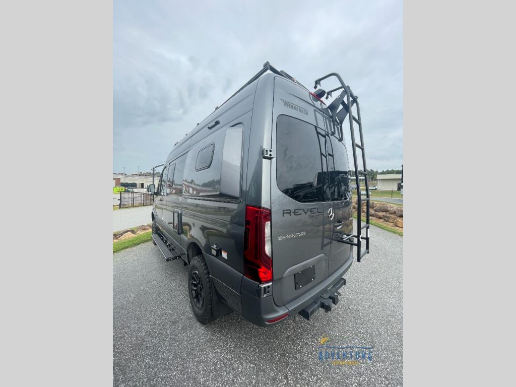 Go off-grid and off the beaten path with the Revel Sport Class B diesel motorhome by Winnebago. The Lithionics 4.1 kWh LiFePO4 battery features a second alternator to charge the system, and you'll appreciate the Bluetooth control, along with 215-watts of solar to keep you powered up. This camper van sits on the durable Mercedes-Benz AWD sprinter chassis with a 2.0L high-output turbo-diesel engine. You will also find a MBUX touchscreen multimedia infotainment system, heated cab seats, plus added safety features, such as active braking assist and blind spot assist. The interior of the Revel Sport is outfitted with heavy duty vinyl flooring throughout to withstand your adventrous lifestyle, and there are RAM Tough-Track mounts throughout to keep your gear secure. Additional features include a hydronic heating system, aluminum running boards with ground effect lighting, a 5,000 lb. trailer hitch, and so much more!