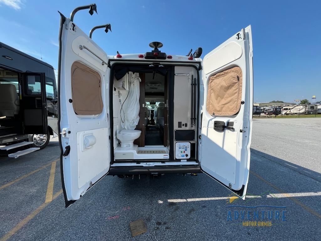Each one of these Winnebago Travato Class B gas motorhomes are perfect for adventure seekers of all types! The rear annex extends your living space and gives you the versatility of hanging wet gear, using it as an outdoor shower, or an impromptu awning. They are powered by a Ram ProMaster 3.6L V6 gas engine with 280 HP and a 9-speed automatic transmission, and include a radio/rearview monitor system with navigation, USB ports, and more to make the drive easier than ever. The superior craftsmanship consists of a Truma Combi Eco Plus heating system that can run off of propane or electricity, aluminum running boards with logoed tread, ground-effect lighting and pet loop attachment so even your furry friends can come along. You will also find RAM Tough-Track Mounts throughout for your gear, tinted coach windows and blackout cassette shades for added privacy, plus a 24" HDTV and Bluetooth soundbar to ensure you'll never go bored!