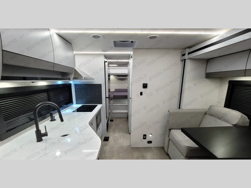 You're sure to have a great time in this sleek motorhome for two! Once you arrive at your destination, the reclining/swivel captain's seats can become a part of the living room where you'll also find a slide out with recliners/dinette. And if you're needing more sleeping space, just choose the optional sofa with a sleeper in place of the dinette! You can then make lunch on the induction cooktop and grab a cold drink from the stainless steel double door refrigerator. The full bath includes a glass shower door, an on-demand water heater, and a shower skylight to let natural light in. Head to the rear bedroom where you can get a great night's rest on the two twin beds with a nightstand in between to set your phone and book on. There is also a 32" bedroom TV so you can watch movies in bed!