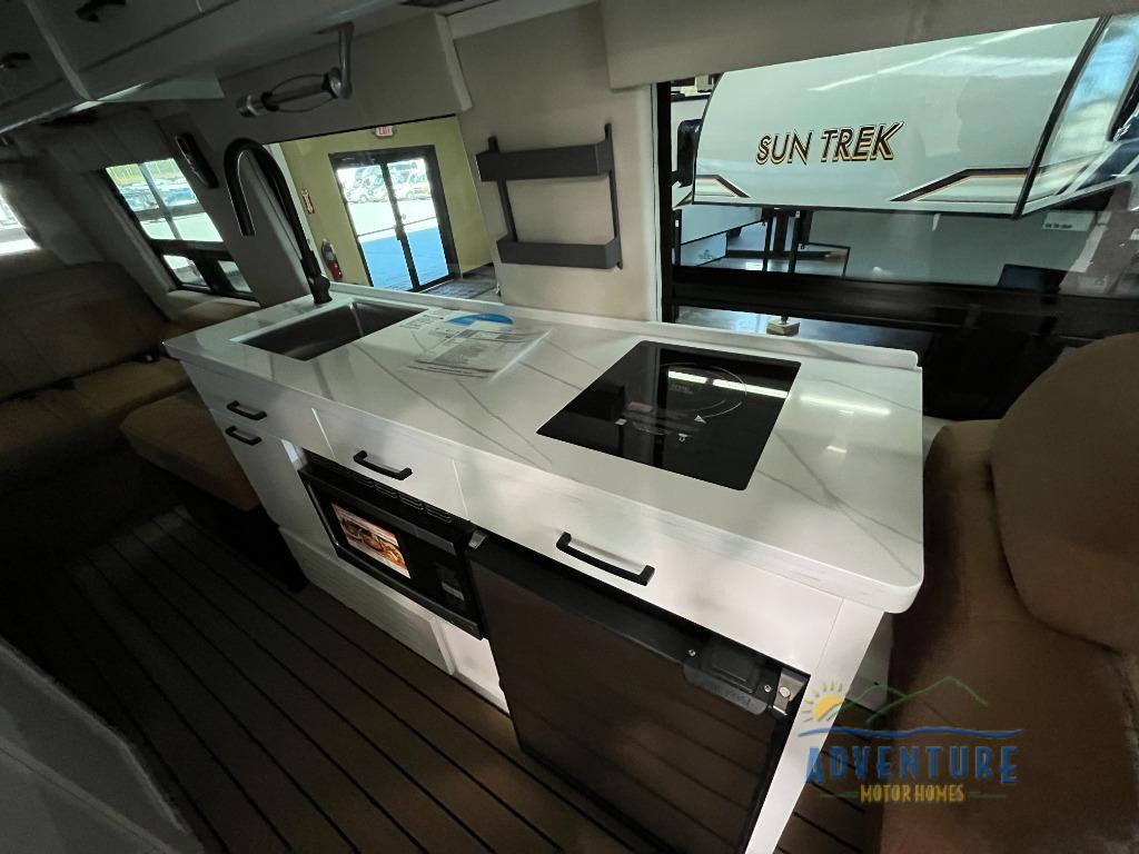 Take in the beauty of the season in comfort with this motorhome! With four captain's chairs, everyone will have a comfortable place to sit while you travel and you could even get some work done with the removable table in between them all. The galley has everything you need to prepare home cooked meals like a single burner cooktop and a refrigerator. Stay squeaky clean with the wet bath including a sink and shower that has an Oxygenics Fury handheld shower head with on/off switch. Above one of the jump seats there is an overhead wardrobe and a 24" LED Smart TV. The rear sofa can fold out to create a sleeping area in combination with the two jump seats so you can have a good night's rest each night! Available with optional AWD chassis. See dealer for details.