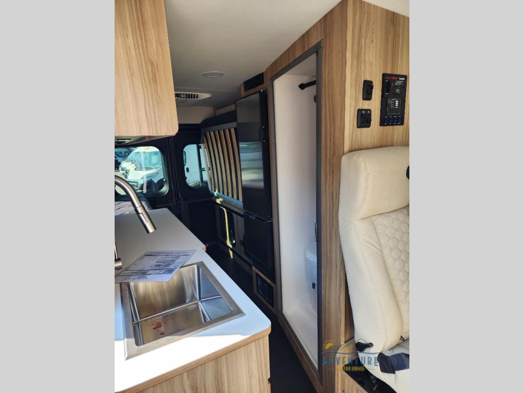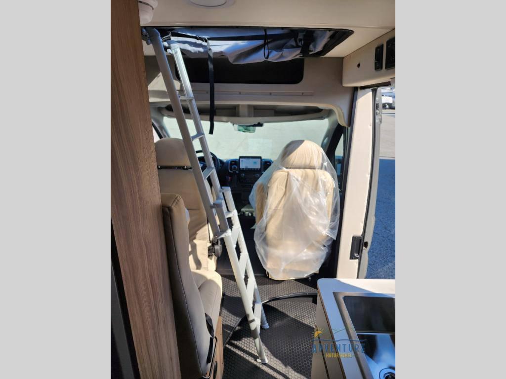 Start a new adventure across the states in this cozy coach! Once you arrive at the campground, you can make lunch on the induction cooktop or in the air fryer/convection microwave. There is also a 7.3 cu. ft. refrigerator with a pull-out freezer drawer to keep your food fresh. You'll find multiple overhead cabinets to keep your belongings tucked out of the way, and the compact wet bath will let you freshen up after a day outdoors. Up front, you'll find two captains seats plus two additional cab seats with a removable table and storage boxes. The 56" x 77" Murphy bed provides versatile sleeping space when you're ready to get some shut-eye. If you're needing additional sleeping space, you can choose the optional pop-top. When the optional pop-top is chosen, the standard Truma A/C is changed out for a Coleman Mach 10 A/C; see dealer for more details.