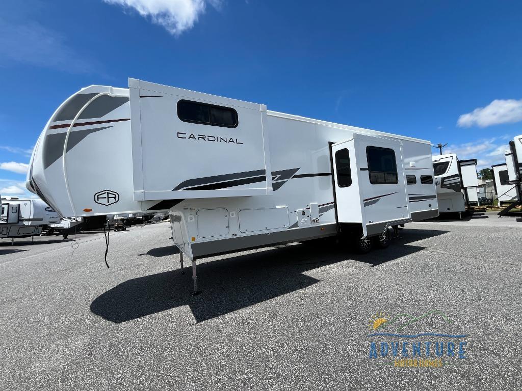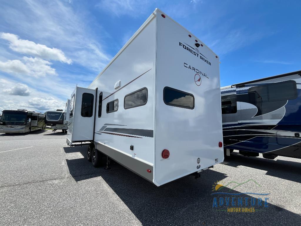 With any Cardinal fifth wheel by Forest River you will enjoy affordable luxury at every turn. These models are constructed with residential fiberglass insulation in the roof and floor, a sectioned ABS plastic underbelly armor, and a vacuum bonded, welded aluminum structure for added strength and durability. You will also find seamless roto-cast holding tanks, an outdoor shower, and 4-point auto leveling for quick and easy setup. There are carpet-free living spaces, residential backsplash, motion lighting throughout, and many more comforts!