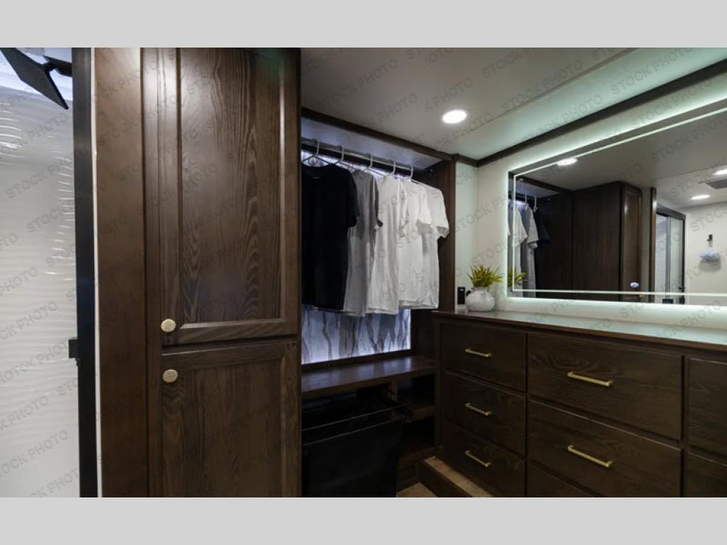 With any Cedar Creek fifth wheel by Forest River, you will find a quality-built RV with your comfort in mind! The all-aluminum super structure on 16" centers or less will provide a solid foundation to your fifth wheel, and the 3M bonded sidewalls will hold up and provide resistance to UV, heat, cold moisture, and even highway chemicals. Each model also includes a Road Warrior suspension for smooth towing, a 6-Point Hydraulic, GEN 3 Leveling System, and a new 101" wide body frame. Inside, you'll enjoy walnut/two tone wooden cabinetry with hidden hinges, cutting board drawer with cut-out trash funnel, motion lighting in the bath and bedroom closet, plus many more comforts. The New Travelfi™ Pay-as-you go internet provides the ability to bring your own internet rather than relying solely on campground WiFi, and the "Rich Solar" 200W solar panel will give you off-grid capabilities!