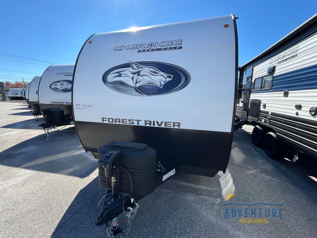 The Cherokee Grey Wolf by Forest River feature distinctive features, at-home comforts, and durable construction materials so you can enjoy your RV for years to come, plus they are outstandingly affordable! You can choose between travel trailers, toy haulers, and even fish houses, depending on the camping style you prefer. You'll find many convenient amenities both inside and outside, along with comfortable seating and sleeping spaces, and plenty of storage for your personal belongings and camp gear!
