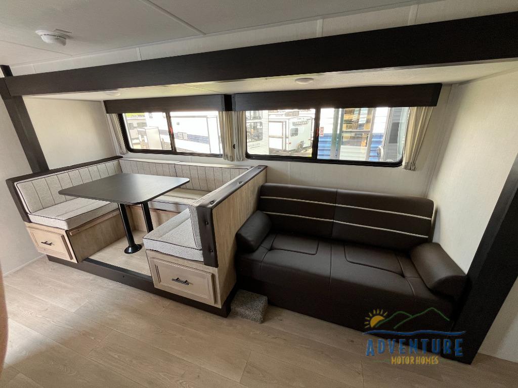You will have such a great time making memories in this Cherokee Grey Wolf travel trailer! This amazing trailer not only has a master suite up front, but it also has another private bedroom in the back which means that both you and the rest of your fellow campers will sleep peacefully and privately. There is also a U-shaped dinette and sofa on the large slide in the main living area so that if you have anyone else traveling with you, they can also have a place to sleep. A full kitchen, complete with an air fryer will help you whip up a hearty meal to replenish your tired bodies, and a pantry will hold onto your snacks and sweets for later.