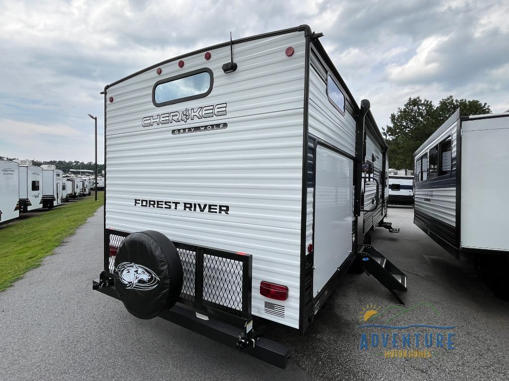 Whether it's a journey that will take you to new locations or a tried-and-true getaway to that favorite and memorable destination, the Forest River Cherokee Grey Wolf travel trailers and toy haulers are going to make the trip worth it every single time! You can travel in confidence with the premium wheel package, seamless roofing membrane with heat reflectivity, Power Gear frame technology with space-saver rail design, and Cherokee back-up camera system. The Cherokee Grey Wolf's interior is highly attractive with its stainless steel kitchen suite package and premium bedding ensemble and comforter. You will also find a black waste tank flush-out kit, an outside shower with hot and cold water, an armored underbelly tank enclosure, and an RV grill quick connect.