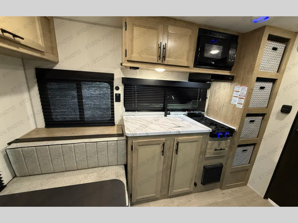 Convenient camping is found with this lightweight travel trailer! Once you arrive at your destination, put out the 15' power awning, then make lunch on the exterior mini kitchen. Inside, you can dine at the booth dinette, freshen up in the tub/shower, and sleep soundly on the queen bed in the master bedroom. And you're sure to find plenty of storage spaces both inside and outside.