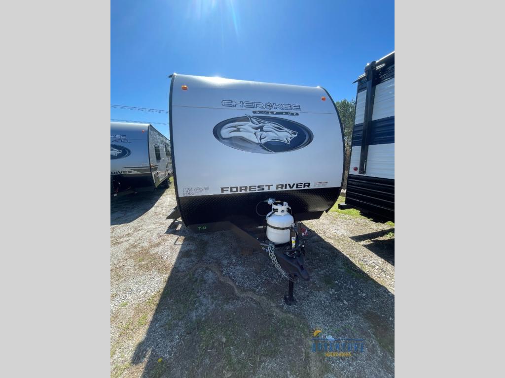 Each one of these Forest River Cherokee Wolf Pup travel trailers and toy hauler are lightweight and easy to tow! They are fully self-contained with ample tank capacities, an abundance of storage space, and filled with at home amenities. The full bath and kitchen amenities will make life at the campground easier than ever, and the outdoor patio awning will provide an inviting outdoor space!
