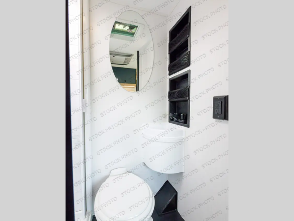 This compact coach is ready for adventure when you are! The swivel captain's seats can be turned around once you park so you can visit with those on the sofa. The mid-coach full bath will allow you to freshen up daily, and there is a shower skylight to provide more head room and natural lighting. When you're ready for lunch, you can prepare it on the single burner induction cooktop or in the microwave with an air fryer. There is also a flip-up countertop for more prep space plus a 12V refrigerator and pantry for food storage. In the back there are dual cabinets below a Euro power lift bed that will provide versatile sleeping space, plus there is a rear access door to let fresh air in and easily unpack gear!