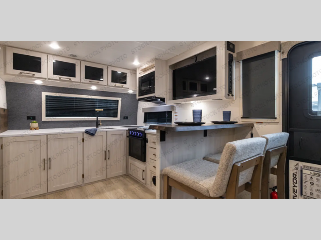 With any Grand Surveyor travel trailer by Forest River you will enjoy turn-key ready-to-go features and quality construction! Each model includes Azdel composite walls and a gel coated fiberglass front cap with an automotive style tinted windshield for a sleek look. There are friction hinge black glass entry door(s), an adjustable platform step with a night light, plus Goodyear tires and a power tongue jack for easy towing. The interior will have you feeling right at home with roller shades, residential faucets, sinks, and bathroom vanity, plus Surf(x) seamless countertops throughout. You can also plan for adventure with a 2" rear accessory and exterior spray port, and there are slam latch exterior baggage doors throughout to keep all your gear secure. Other stand-out features include a central vacuum system, a 200 watt solar panel with a 30 amp controller, a tankless water heater, carpet-free interiors, and the list goes on!