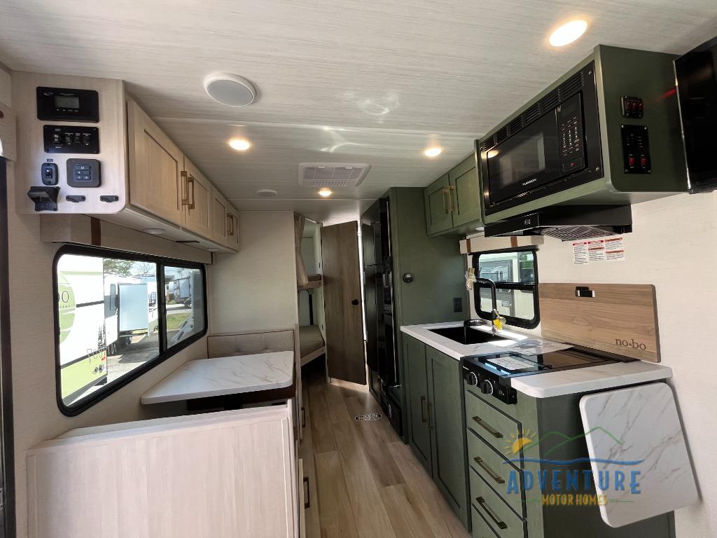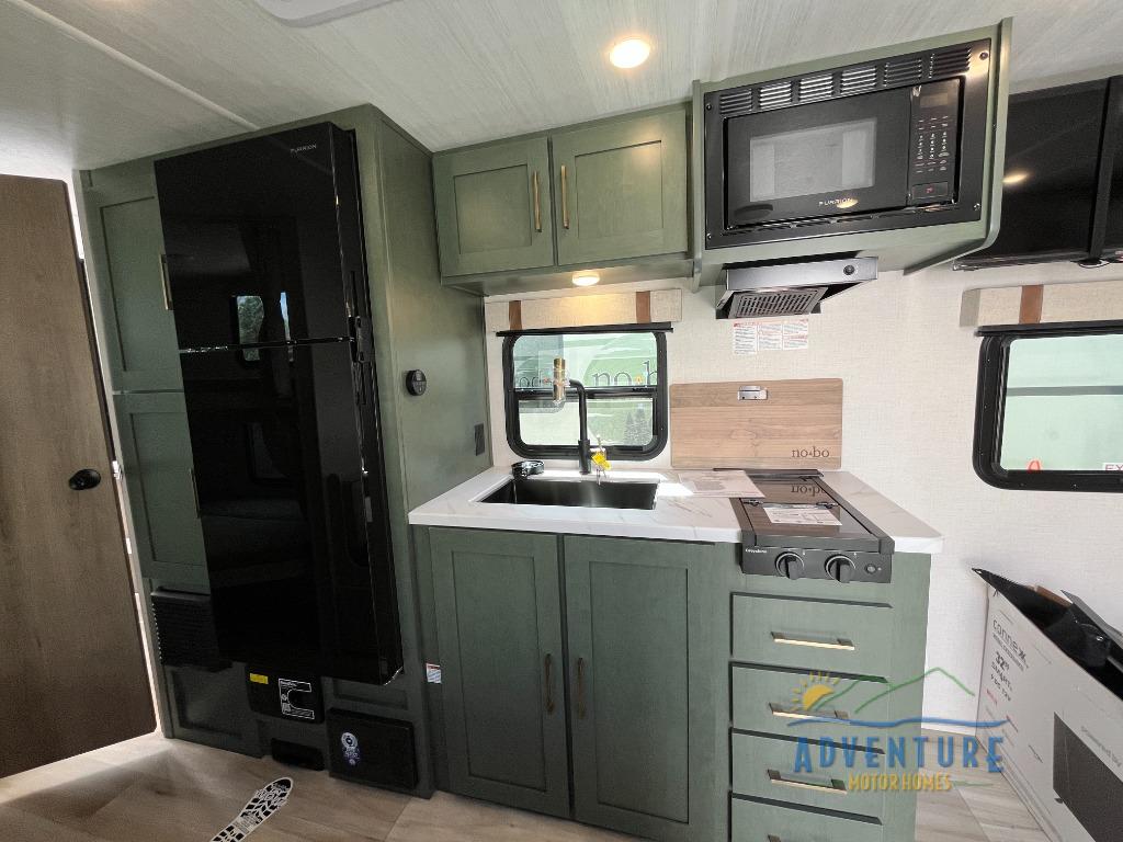 With this No Boundaries travel trailer, you can go to places you've never been before! The patio awning will protect you while you're outside having fun, and once you make your way inside, you can sit down at the booth dinette for some dinner. The 44" x 74" double-size bunks will give you extra sleeping space without taking up too much room, and the Murphy bed also utilizes space well by folding away during the day to reveal a sofa. Outside, you'll find slam latch cargo doors with pass-thru lighting, an outside kitchen, a pre-installed solar panel, and more! When the optional Beast Mode Package on this model is chosen, you'll enjoy a 400-watt solar package, a fresh water filter, a Maxxair roof vent cover, plus a Beast Mode independent suspension for better handling.