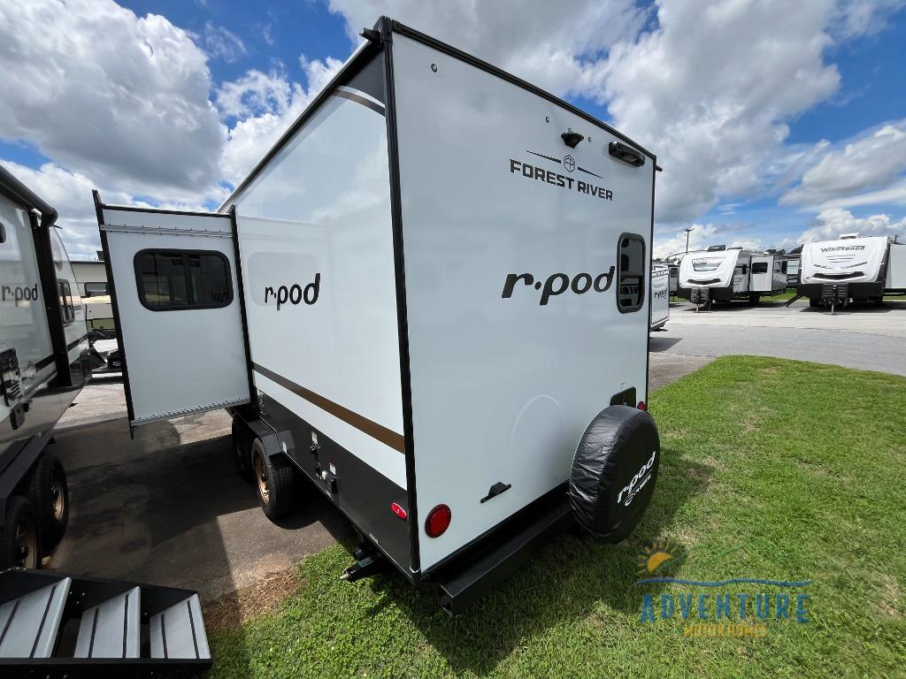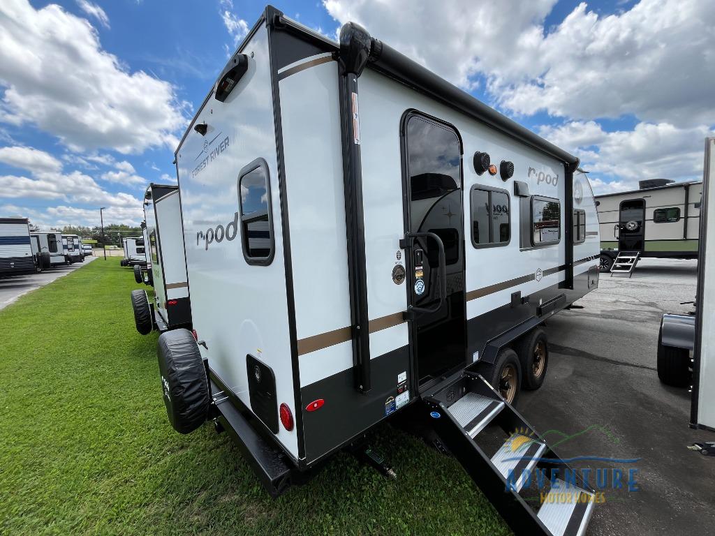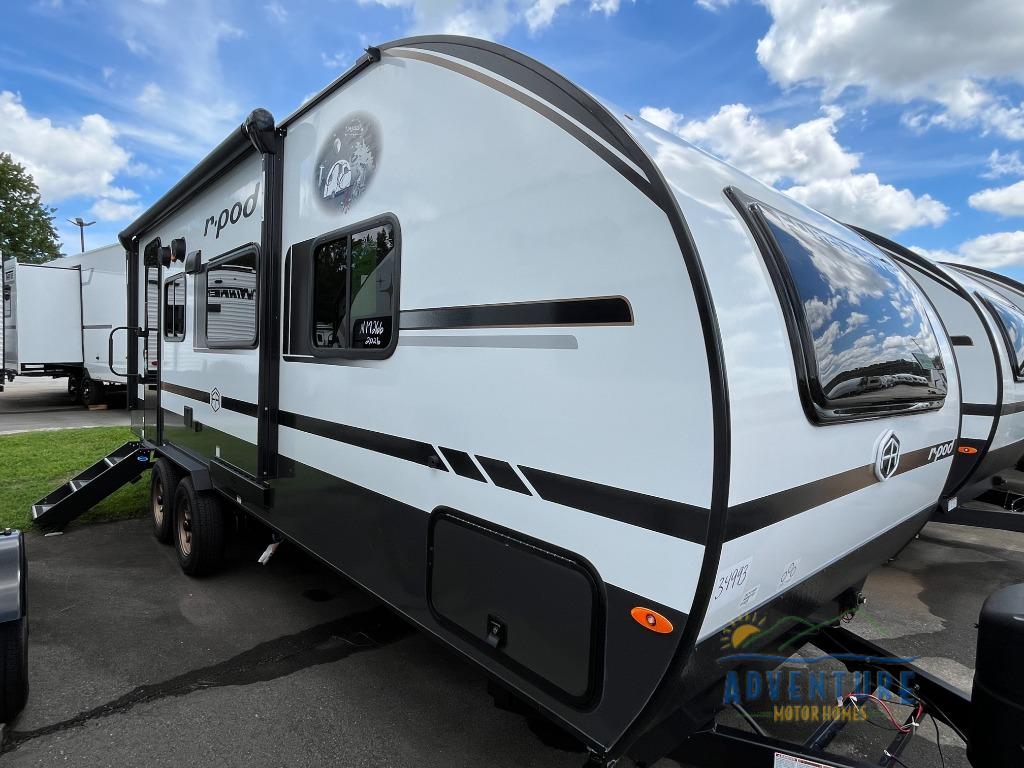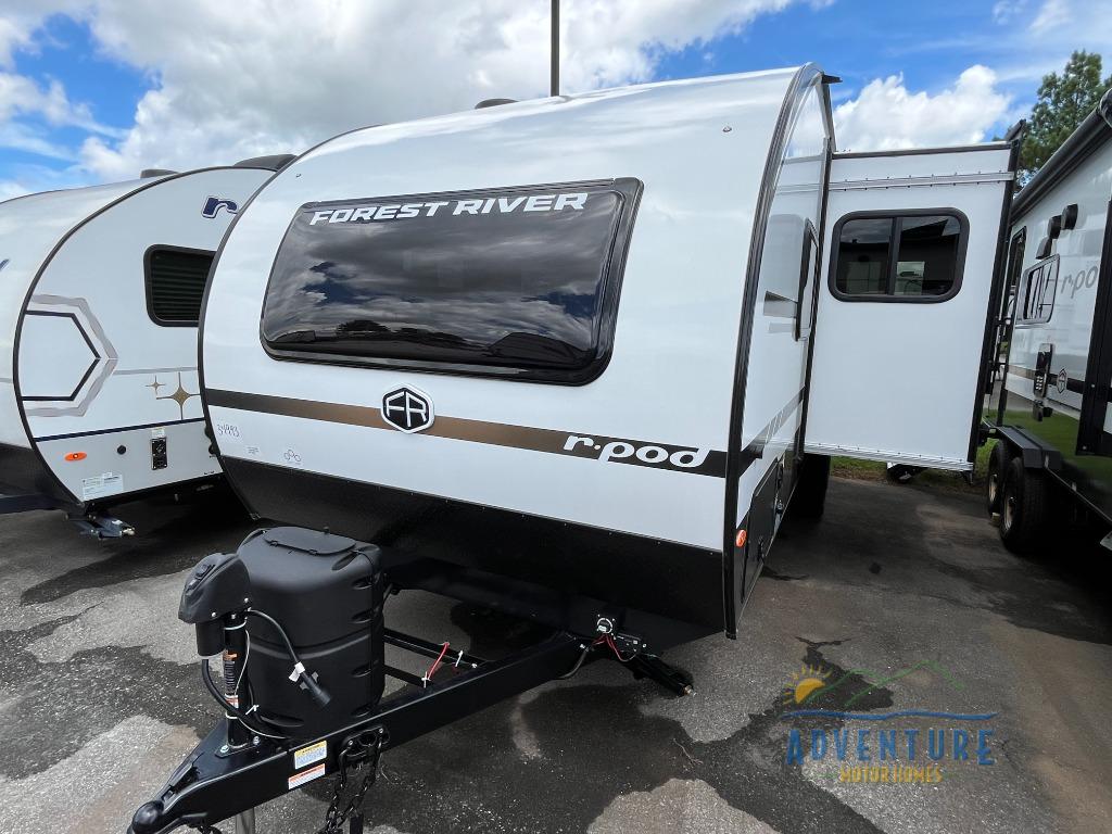 With any R-Pod travel trailer by Forest River, you will enjoy affordable luxury at the lowest tow weight in its class! There is a sealed underbelly with forced heat, a curved dual-pane acrylic front window with a bug screen and night shade, plus a large roof mounted solar panel for off-grid capabilities. The 15K A/C unit will keep you comfortable during the summer camping months, and the tankless water heater will provide endless hot showers after hiking, biking, swimming and more! Each model also includes a black glass friction hinge entrance door, roof ladder prep, exterior motion lighting, plus a hot and cold exterior spray port to wash off sand from the beach. Inside, you'll enjoy seamless Surf-X kitchen countertops, blackout roller shades, and a central vacuum system for hassle-free cleaning!