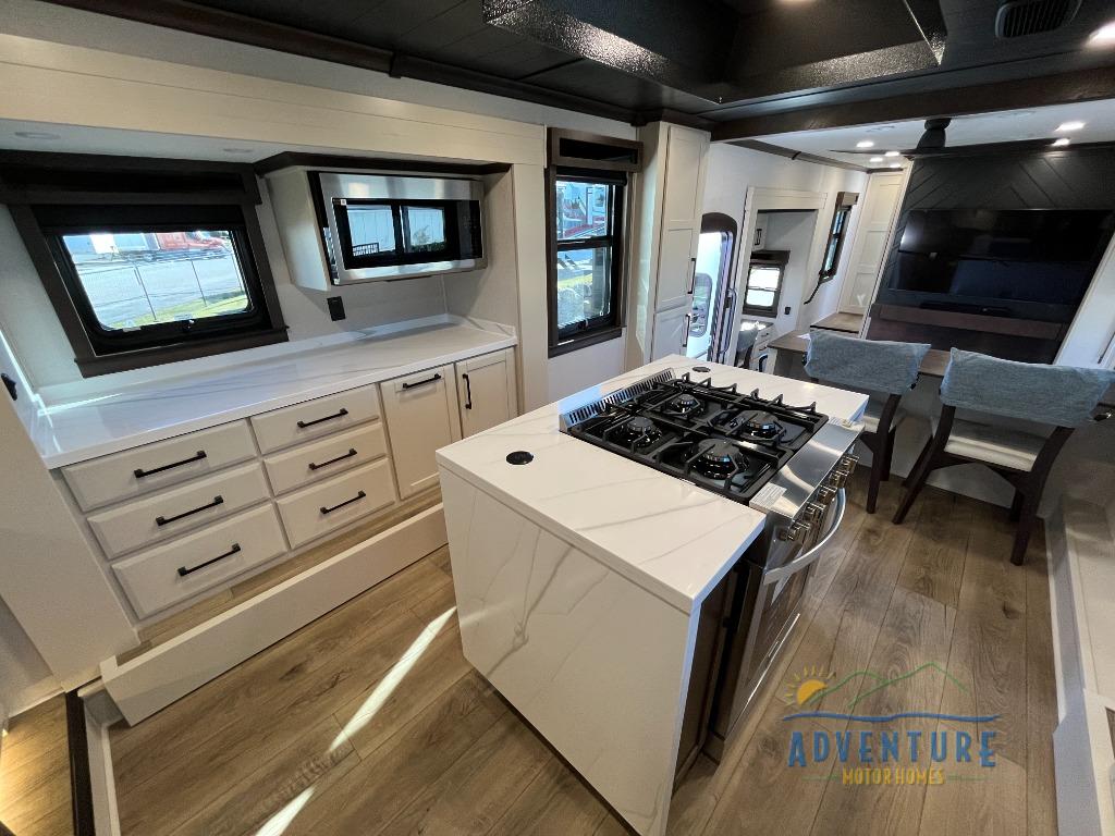 The Forest River RiverStone fifth wheels and toy haulers are luxurious units that have it all! You'll find an automatic six-point hydraulic level-up system to keep your unit in place, and there is preparation for a four-camera observation system. The TravlFi Journey XTR 4G/LTE router and WiFi extender will help you stay connected to the outside world, and you'll never have to overpack again since the Splendid “Astral” stackable washer and dryer will let you clean the small amount of clothes you've brought with you. Another high luxury is the Fischer Paykal dishwasher which will allow you to spend more time enjoying your camp life and less time cleaning up. Each unit is built with a LCI Road Armour suspension system, dual-pane frameless windows, a full docking station, a 200W solar panel, and a BMPro touch control system.