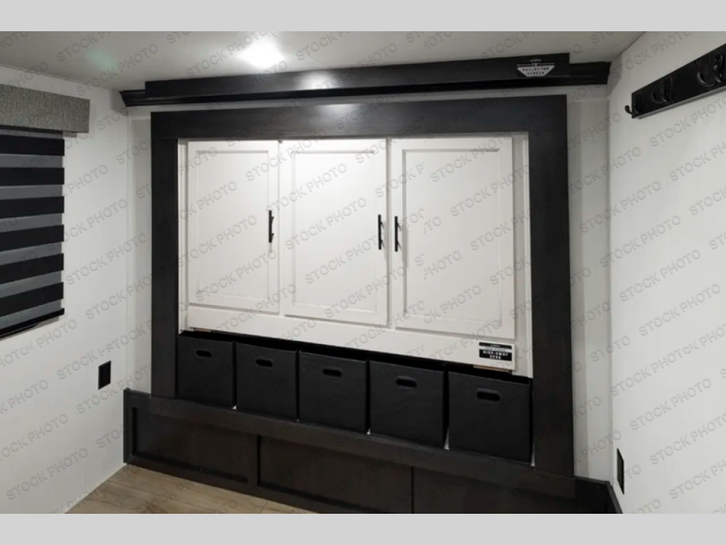 This is the perfect fifth wheel if you enjoy camping with friends and family! You'll have the front private bedroom with a camper king bed slide all to yourselves, while your guests take the rear den. There is a tri-fold sofa here, along with a wardrobe with a desk, additional shelves plus a loft above this room for even more sleeping or storage space! The main living room features an L-shaped sectional sofa, a fireplace and an entertainment center. And the patio deck with a 12' awning is right off of this room so you can visit with friends indoors or outdoors! There is generous counter space in the full kitchen, along with a pull-out storage drawer and a versatile dinette/desk. There are many more stand-out features found in this fifth wheel, including washer and dryer prep in the front bedroom, a 70" projector screen in the rear den, a second power awning, and the list goes on!