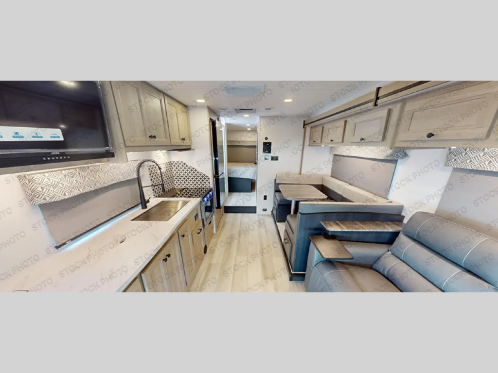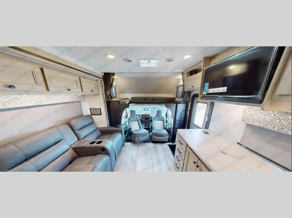 With any Sunseeker Class C gas motorhome by Forest River, you will enjoy more features and quality construction at a great value! Each model comes standard with a fiberglass roof and 2" aluminum framed laminated sidewalls for maximum durability. The Winegard Air 360+ digital antenna is your all-in-one solution for your internet, TV, and FM signal needs, and you have Gateway 4G Wi-Fi capability too. The exterior has an outside shower, heated/enclosed tanks, Rotocast storage compartments, and a power awning with an LED light strip to name a few conveniences. Each drive will be made easy thanks to a 10" touchscreen CarPlay/Android radio with USB and Bluetooth, backup camera/side view cameras with a 3-way monitor, and Ultraleather seating for added comfort. You'll also love the black out roller shades, soft touch self-closing drawer guides, oxygen-infused shower head with a flexible extension, and many more interior comforts!