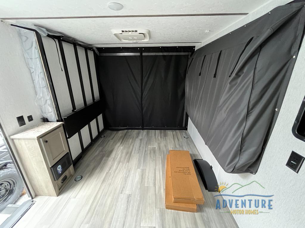 Get ready for a great camping experience where you can take along your favorite ride-on toys, kayaks, or other items that you may not normally have room to load as this toy hauler features a 6' 9" cargo width and 10' 11" cargo length. Once unloaded, set up with the rear bed that will make for a great night's rest. The front of this unit is shared with the wet bath and kitchen. Here, you can make meals on the two burner stove or in the microwave oven, and there is a refrigerator for perishables. And when the optional tent bed is added on this model, you can sleep more campers!