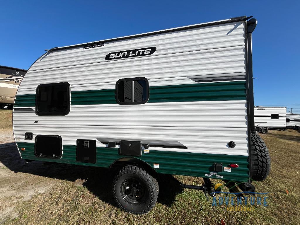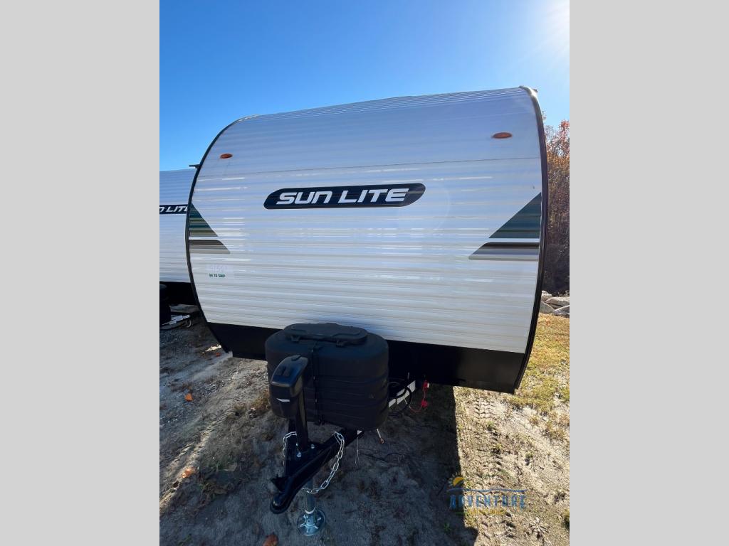 You can trust the build and enjoy your experience with any one of these Sunset Park RV Sun Lite travel trailers! Their aerodynamic profile is not only easy to haul, but also saves on fuel. They are built to withstand years of traveling even though they are lightweight with a diamond plate rock guard, a one piece PVC roof membrane, Dexter Spring-Leaf axles, and tinted safety glass windows. Some comfort standards you are sure to enjoy are the two-burner stove top range with hood, light and fan, plus the refrigerator and microwave, and an outside shower to help keep the dirt outdoors where it belongs.