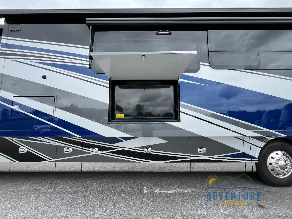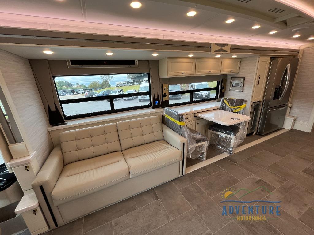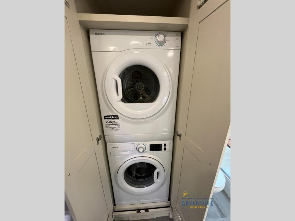 Fours slides, a bath and a half, plus sleeping space for six make this coach family friendly. There are two sofa beds in the main living area, plus a lift TV for your favorite shows. The chef of your group can cook meals on the two burner induction cooktop or in the stainless steel convection microwave with an air fryer, and there is a drawer-type dishwasher that will make clean up easier than ever. This model also includes a residential refrigerator plus pull-out storage and a stack of drawers for snacks galore. Enjoy a great night's rest on the king bed after traveling all day, and the full rear bath will allow you to clean up in luxury. There is even a floor-to-ceiling closet for maximum storage and a stacked washer and dryer; how convenient!