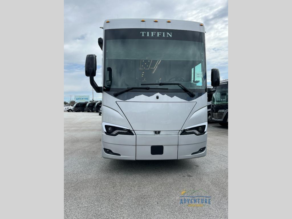 The Bob Tiffin Limited Edition Bus by Tiffin Motorhomes is specifically designed with Tiffin Motorhomes', founder Bob Tiffin in mind! This Class A diesel coach sits on a durable PowerGlide raised rail rear engine diesel chassis with a powerful Cummins L9 450 HP diesel engine. High-end features included are the exterior paint scenes highlighting the Rocky Mountains and the slide fascia that takes after the grill of a Packard, Bob's favorite car! It will be so easy to manage the functions of your coach with a Spyder controls multiplex system, and the 10.0 kW Onan quiet diesel generator will keep you powered up and ready to go. Inside, there are powered solar and privacy shades, egress windows throughout, a central vacuum system with a VacPan automatic dustpan, handcrafted overhead cabinetry, and many more comforts. This is also a hydronic heating and electronic appliances equipped coach and there are three 15k BTU A/C units to keep you comfortable all year long. And we haven't even touched on the exterior features, like the Girard roof-mounted awnings, exterior TV with a soundbar, side-swinging exterior storage doors with gas shocks, and the list goes on. Bob Tiffin's 51 years and counting in the motorhome industry is honored perfectly in this coach, check it out today!