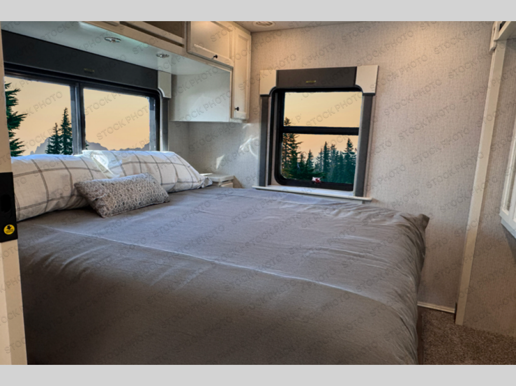 You'll love how easy it will be to maneuver this coach since it comes in at only 32-feet in length! The full-wall slide will open up your space so you can cook on the three burner range and dine at the booth dinette-sleeper. There is also a residential refrigerator and a pantry for food storage plus a bedroom wardrobe with drawers within the slide to keep your thing tidy. Once dinner is cleaned up, you can relax on the theater seating across from the wall mounted TV, or head outdoors to visit under the Girard power awning with LED lights. You're sure to get a great night's rest on the king bed, while your guests sleep on the booth dinette-sleeper. And if you're needing additional sleeping space, just choose the optional drop-down cab bunk!