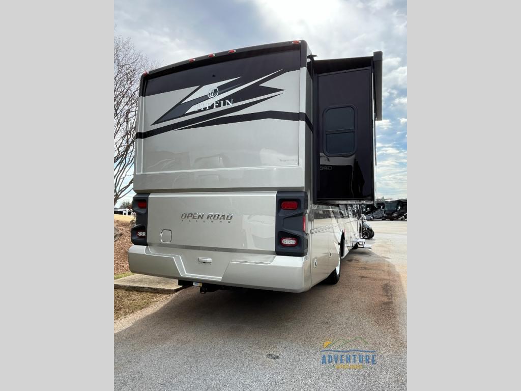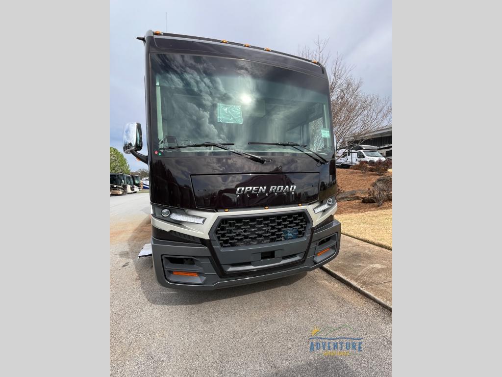 Every one of these Tiffin Motorhomes Open Road Allegro Class A gas motorhomes are ready to go when ever you are! A Ford 7.3L V8 engine powers these units and a durable, yet lightweight, tubular aluminum wall skeleton holds them together. They are beautifully designed with handcrafted cabinetry and a panoramic kitchen galley window for breathtaking views. A couple electronic features you will appreciate include an exterior TV with a soundbar and a Spyder multiplex system, plus there are two 13.5k BUT AC units to keep you cool on those hot summer days. The color back-up camera and side-view cameras will make parking easier than ever, and you'll appreciate hydraulic leveling jacks with a control panel for hassle-free set up. You'll love the new decor options, along with the new Generation 12 exterior color paint options, plus a 10" detachable touchscreen with a media center!