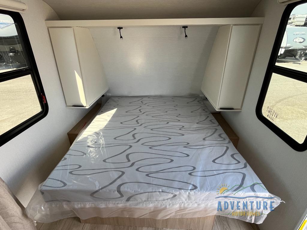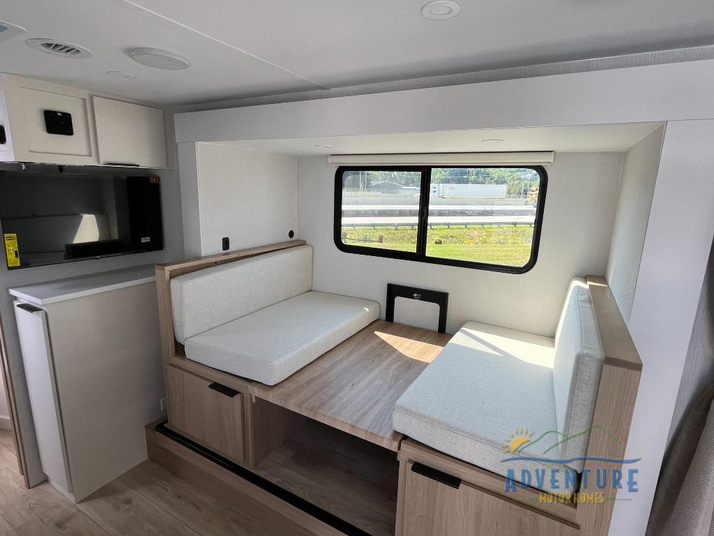 Pack your bags and head to the campground with this travel trailer! You will love all that it has to offer from the full rear bathroom to the front 60" x 74" RV queen-size bed with dual wardrobes on either side of the bed. The 44" x 72" booth dinette slide is not only a great place to enjoy your meals at or play card games, but it can also be transformed into an extra sleeping space if you want to bring along a guest. When you don't feel like making dinner, you can easily pop in some leftovers or a bag of popcorn into the convection microwave and relax while you watch a movie on the Smart TV!