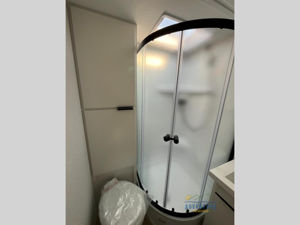 It will be so easy to enjoy camping trips in this compact travel trailer. The jack knife sofa slide provides more floor space plus a place for an overnight guest to sleep. You'll find an Olympic queen bed up front with a privacy curtain and dual bedroom wardrobes to keep your things tidy. A recessed three burner cooktop with an oven will let you make meals each day, and the 10.6 cu. ft. 12V refrigerator will keep your cold items fresh. There is also a pantry with pull-out shelves for added storage space. The full bath includes a power vent fan and a shower skylight that will give you more lighting and extra head room as you get ready each day!