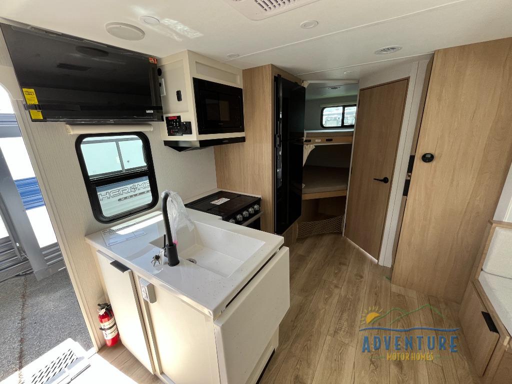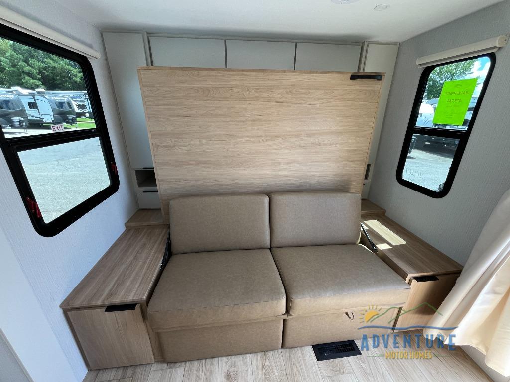 If you enjoy camping with a larger group, this travel trailer with double-size bunks is sure to be a fit! There is also a U-shaped dinette within a slide for more sleeping space, and you'll find the front king-size Murphy bed to be very versatile. A recessed three burner cooktop with an oven will let you make meals each day, and the 10.6 cu. ft. 12V refrigerator will keep your cold items fresh. There is also a countertop extension, giving you more space to prep meals. The full bath includes a power vent fan and a shower skylight that will give you additional lighting and extra head room as you get ready each day!